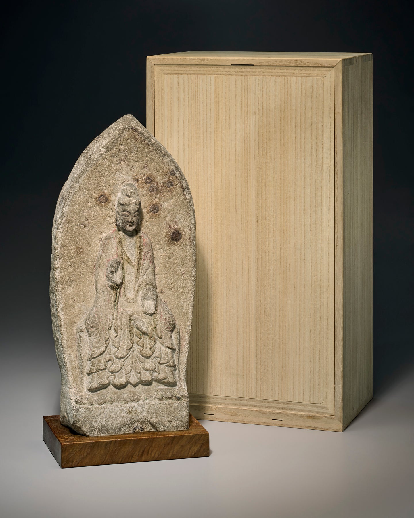 16 7⁄8 in. (42.8 cm.), softwood stand, Japanese wood box