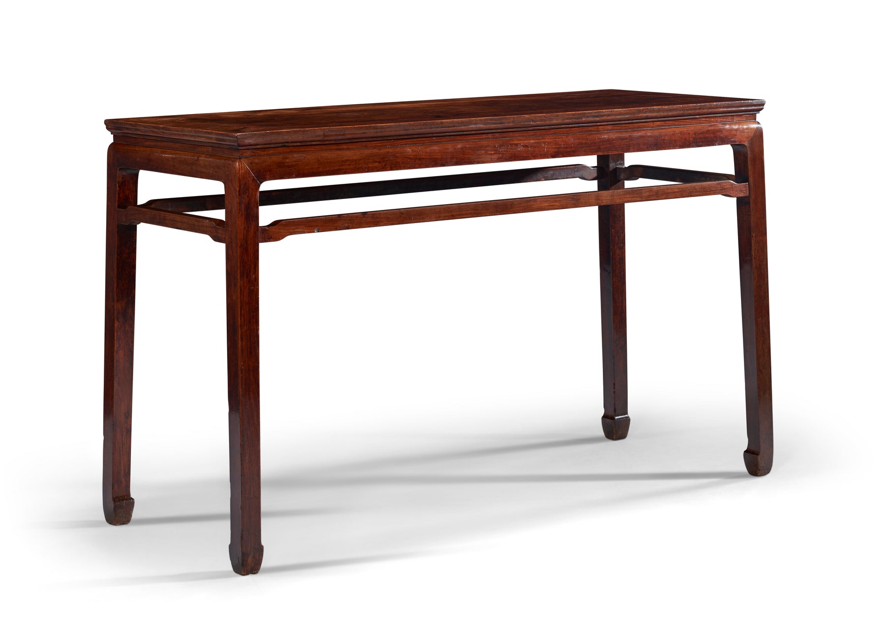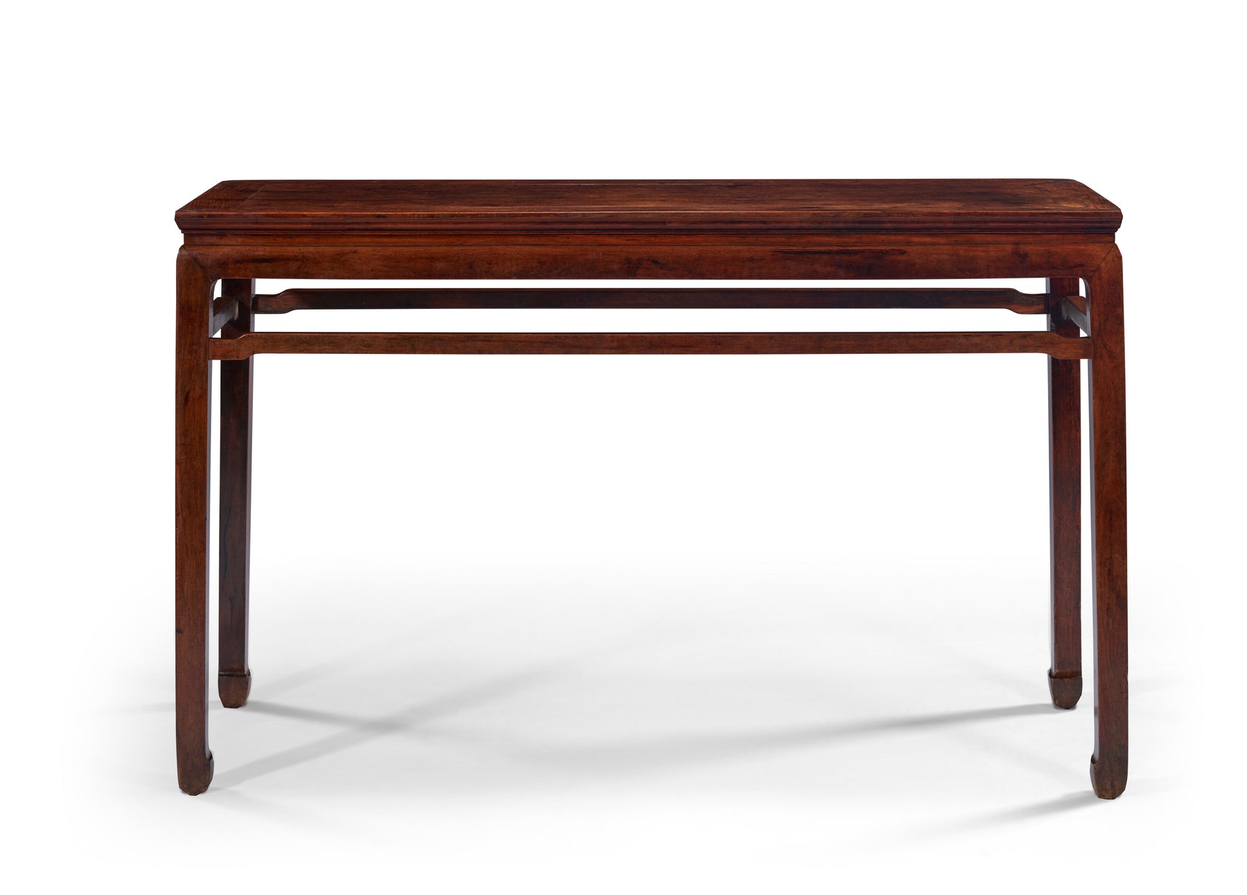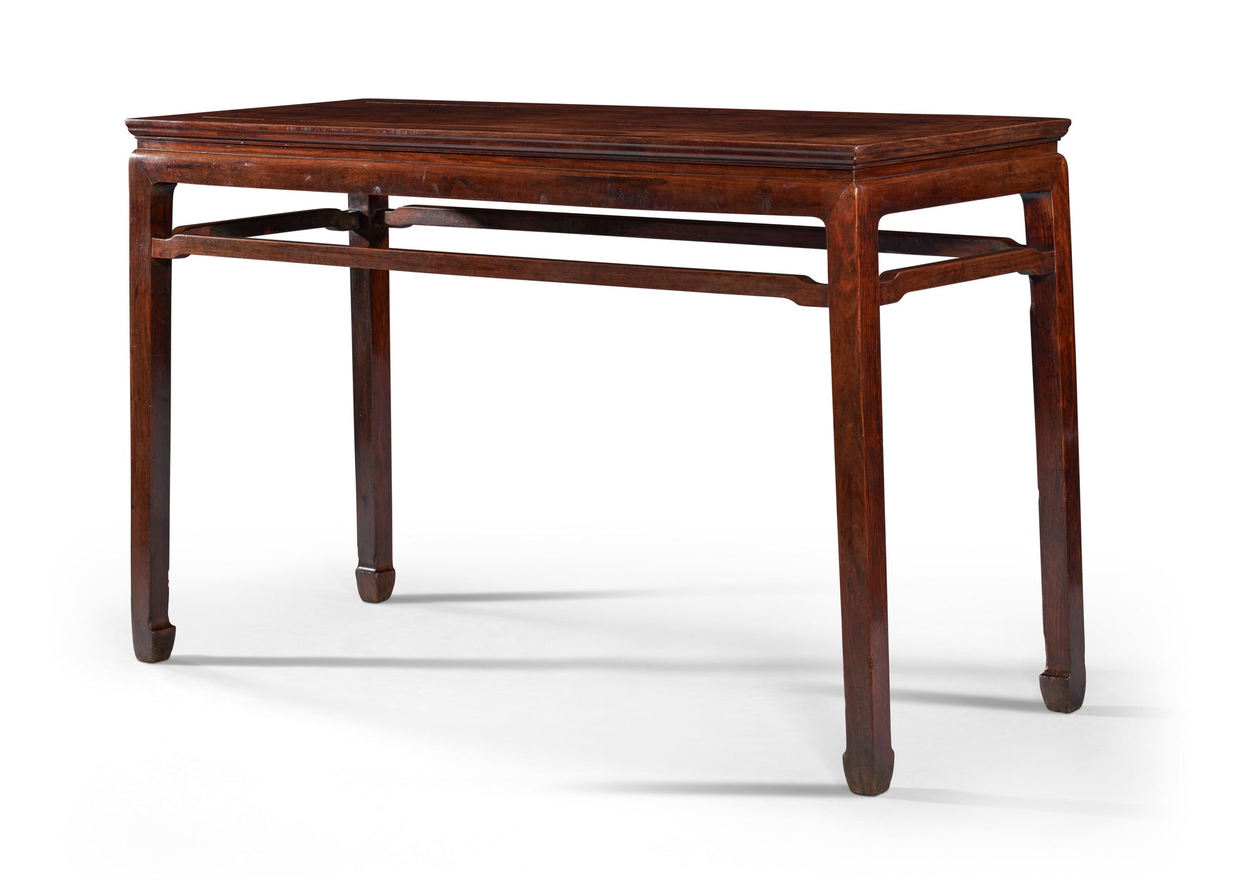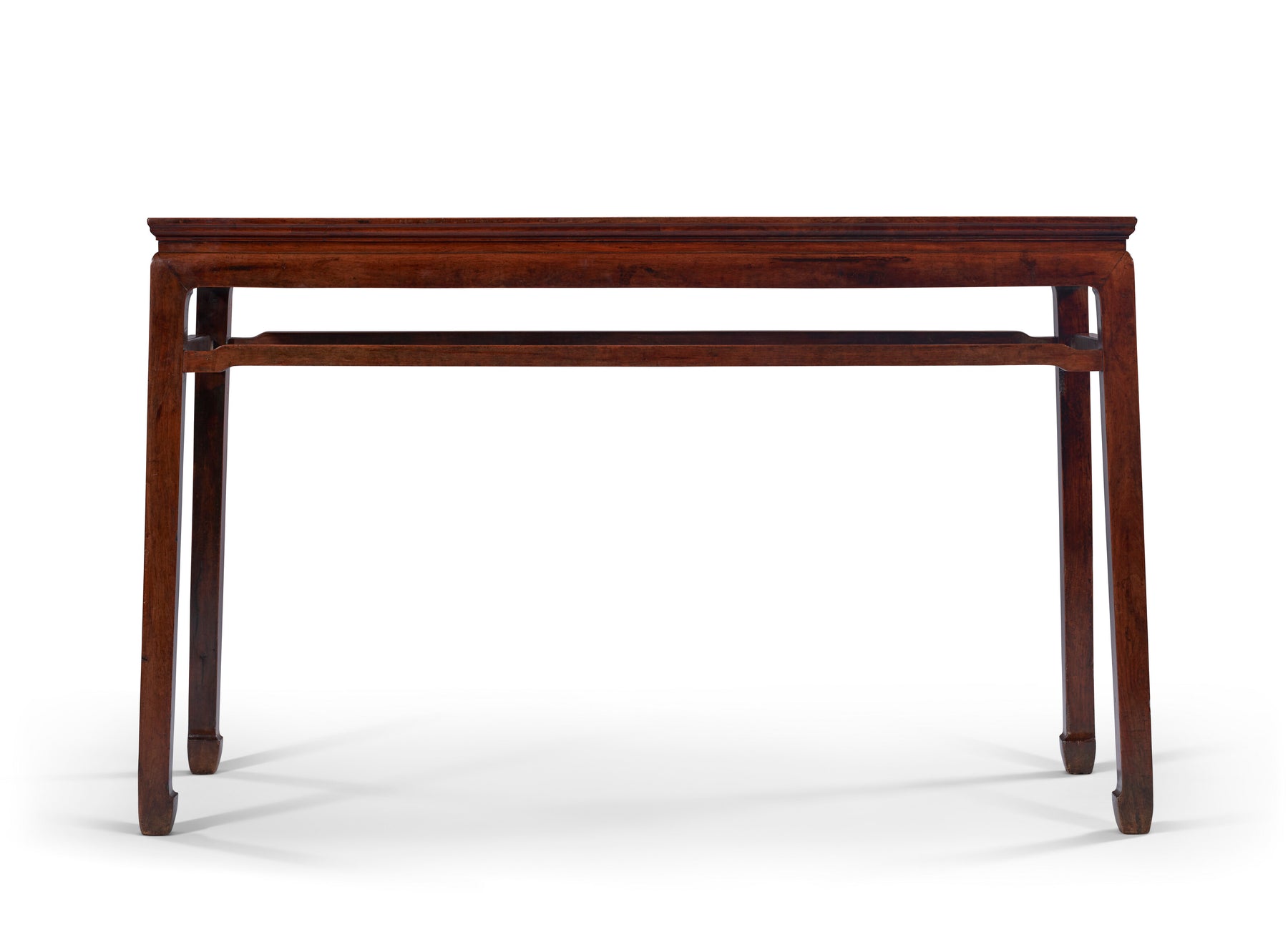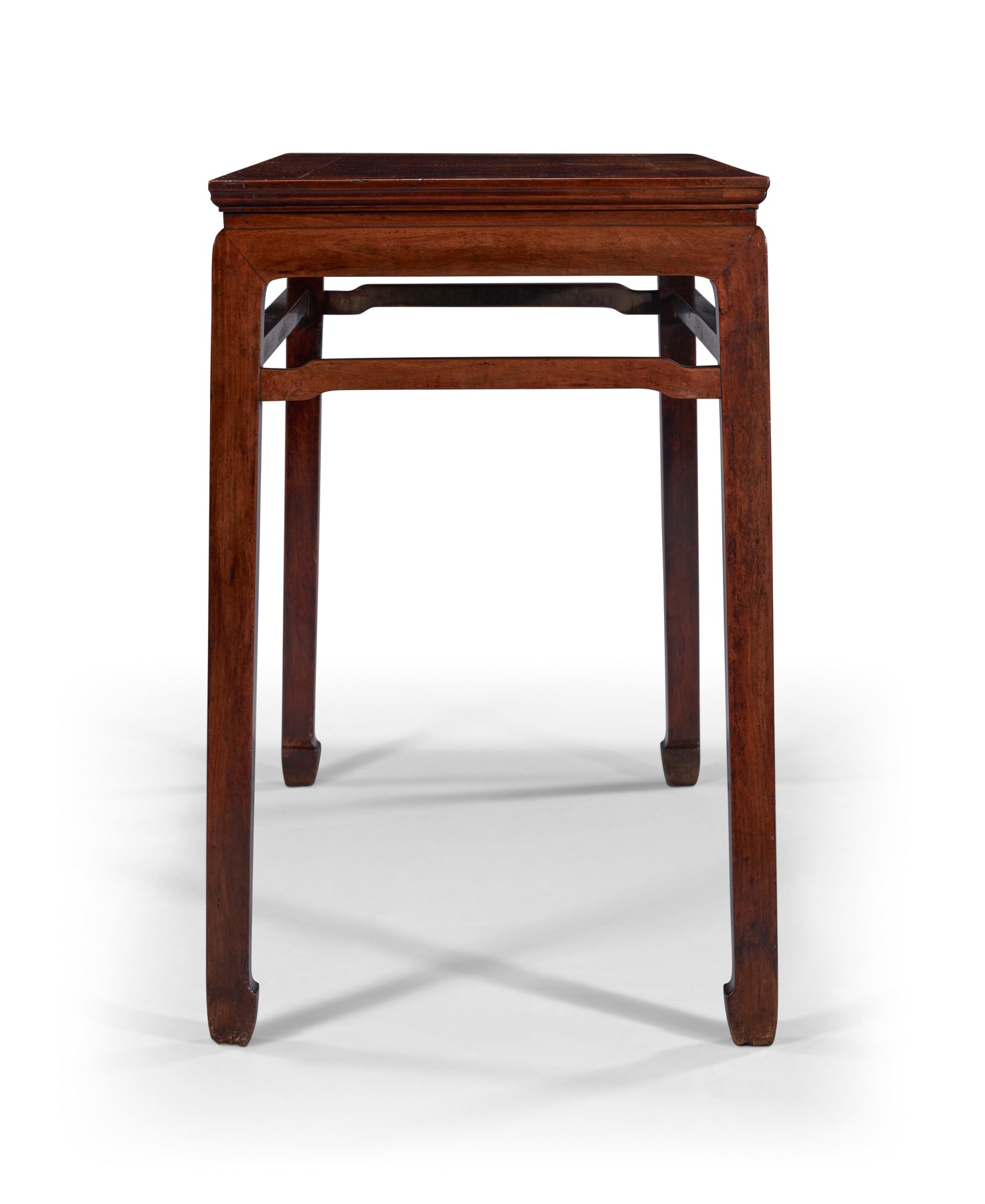 This simple, elegant form was one of the most frequently employed in Chinese furniture construction. Numerous variations on the form exist, including waisted and waistless examples, those with and without stretchers, and both square and side tables. Two similar but smaller tables, both with beaded aprons, were sold at The Marie Theresa L. Virata Collection of Asian Art: A Family Legacy; Christie’s New York, 16 March 2017, lot 651 (69.2 cm. wide) and Christie’s New York, 22 September 2023, lot 950 (94 cm. wide). See, also, an example with braces illustrated in N. Berliner, Beyond the Screen, Chinese Furniture of the 16th and 17th Centuries, Boston, 1996, p. 130-1.